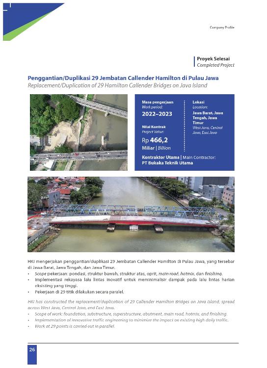 BACK PROJECT INFORMATION × DOWNLOAD PROJECT INFORMATION * special report civil work 08 - 13 juli 024.pdf* special report civil work 24 - 29 juni 2024.pdf* special report civil work 01 - 06 juli 024.pdf PT HUTAMA KARYA INFRASTRUKTUR HK Tower, Lt.15, Jl. Letjend MT Haryono Kav. 8, Cawang Phone : 021-8191584 Fax : - Email : dept.pbk@hkinfrastruktur.com Website : http://www.hkinfrastruktur.com Contact : Kevin Matondang BUSINESS ACTIVITY : - BUSINESS LICENSE : - PRODUCT INFORMATION : o CONSTRUCTION CIVIL & STEEL WORK LIST OF PRODUCT Category : CONSTRUCTION CIVIL & STEEL WORK o Sub Category Infrastructure Construction Jembatan Jalan Tol Rest Area