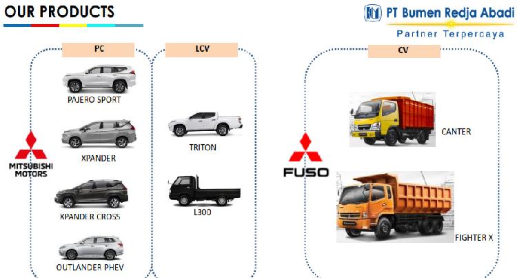 PT Bumen Redja Abadi (BRA) merupakan Dealer Resmi dari PT Mitsubishi Motors Krama Yudha Sales Indonesia (MMKSI) dan PT Krama Yudha Tiga Berlian Motors (KTB) selaku distributor kendaraan Mitsubishi di Indonesia yang melayani Sales, Services, Spare Parts serta layanan rekondisi kendaraan Bodi & Cat. Services • Penjualan kendaraan • Layanan service • Spare part • Authorized bodi dan cat • Authorized Cabin Chassis Repair |